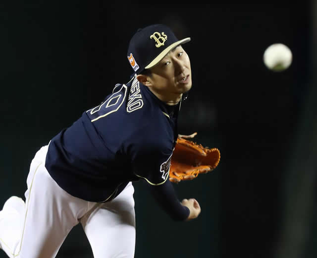 5番 ボグセビック 左安 ランナーフルベースの1-1からレフトへのタイムリーヒットでオリックス先制! 西0-2オ 1,2塁 ![]() 0