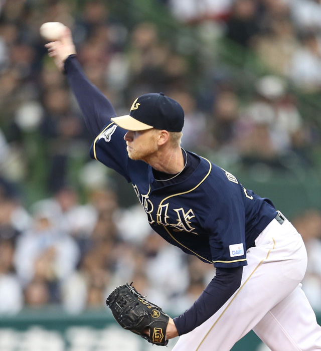 5番 ボグセビック 右安 ランナー1,2塁の2-1からライトへのタイムリーヒット 西3-5オ 1,2塁 ![]() 3