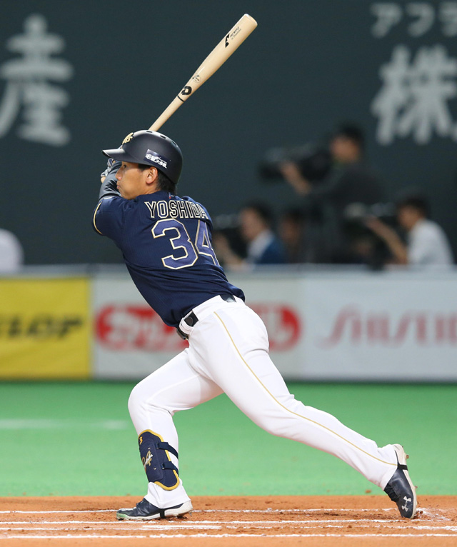 6回無死二塁、二塁打を放った吉田正