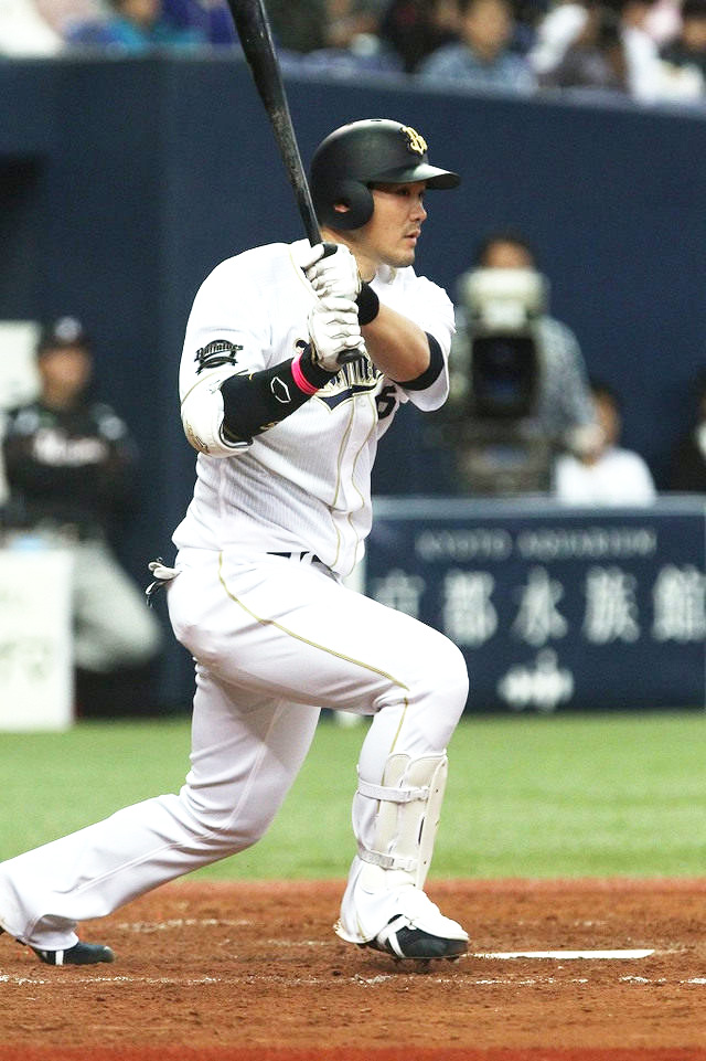5回、T-岡田選手はチャンスを作る二塁打を放つ