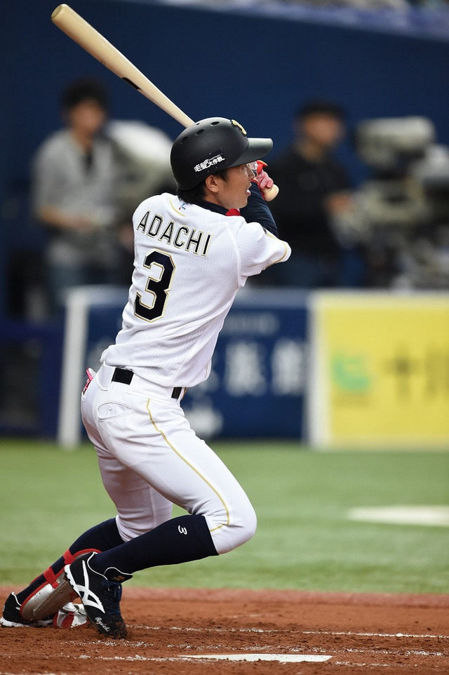 7番 安達 左安 レフトへのヒットを放つ 1,2塁 |