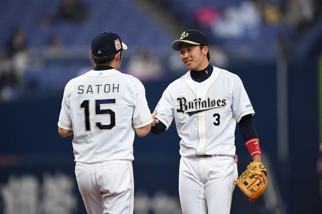 7番 レアード 中安 1アウト2塁から先制のタイムリーヒット! オ0-1日 1塁 ![]() 0
