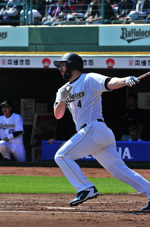 4番 モレル 中安 2アウト3塁の2-2からセンターへのタイムリーヒットでオリックス同点! オ1-1西 1塁 ![]() 1
