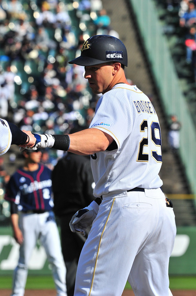 5番 ボグセビック 右安 ランナー1,3塁からライトへのタイムリーヒットでオリックス同点! オ2-2西 1,2塁 ![]() 2