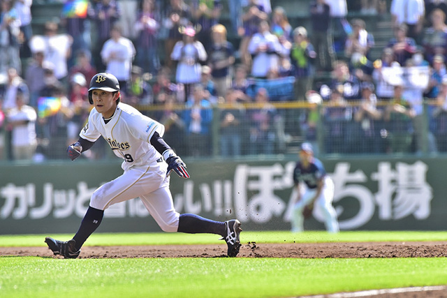 5番 栗山 左中二 レフトへタイムリーツーベース! オ4-3西 3塁 ![]() 4