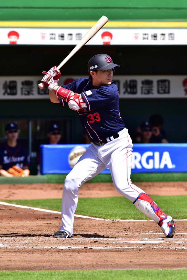 投手 郭俊麟 8番 縞田 中安 センターへのヒットを放つ 1塁  |