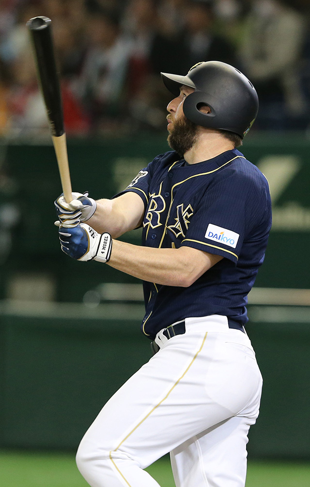 5番 小谷野 左本 2-0からレフトスタンドへのホームランでオリックス勝ち越し! 楽2-3オ ![]() 2
