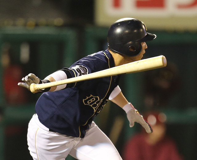 投手 東明 1番 島内 中安 センターへのヒットを放つ 1塁 |