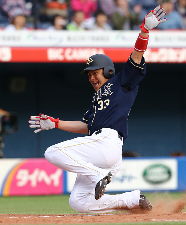 | 3番 清田 左安 2アウト3塁の1-2からレフトへのタイムリーヒットでロッテ先制! ロ1-0オ 1塁  1 0  | |