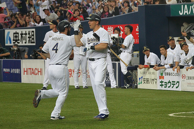 4番 モレル 中本 ランナー2塁からバックスクリーンへの2ランホームランでオリックス先制! オ2-0ソ ![]() 2