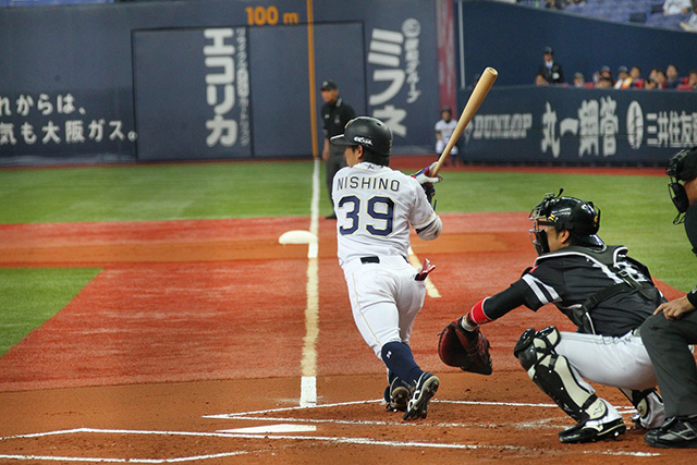 2番 西野 左安 レフトへのヒットを放つ 1塁 |