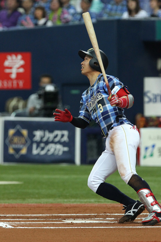3番 糸井 左安 レフトへのヒットを放つ 1,2塁 |