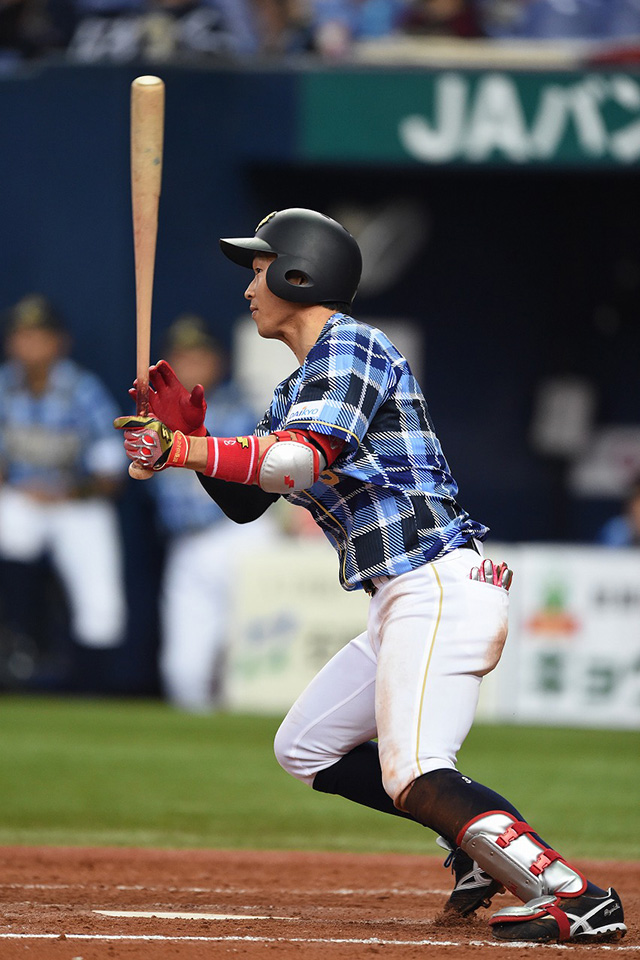 2番 聖澤 右安 ライトへのヒットで出塁 1塁 |