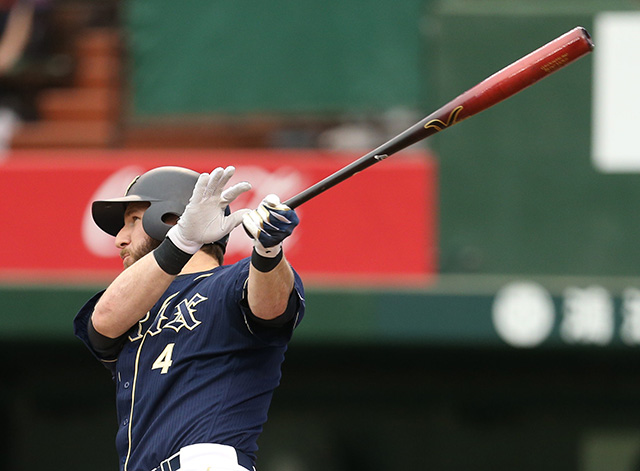 4番 モレル 右中二 フェンス直撃のツーベースを放つ 2塁 |