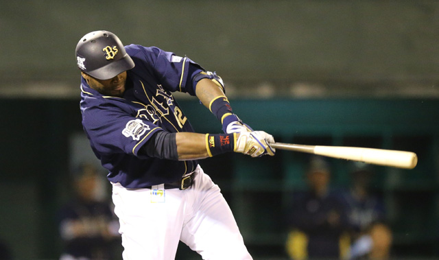 4番 モレル 中安 ランナー1,2塁からタイムリーヒット 楽0-4オ 1,2塁 ![]() 0