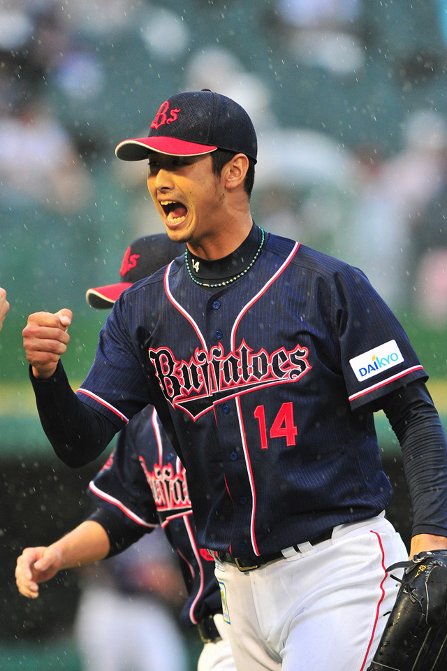 1死1・2塁のピンチで登板しL打線を0に封じた吉田一投手