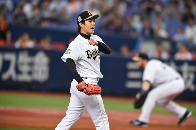 ピッチャー田原誠に代わって山口がマウンドにあがる |