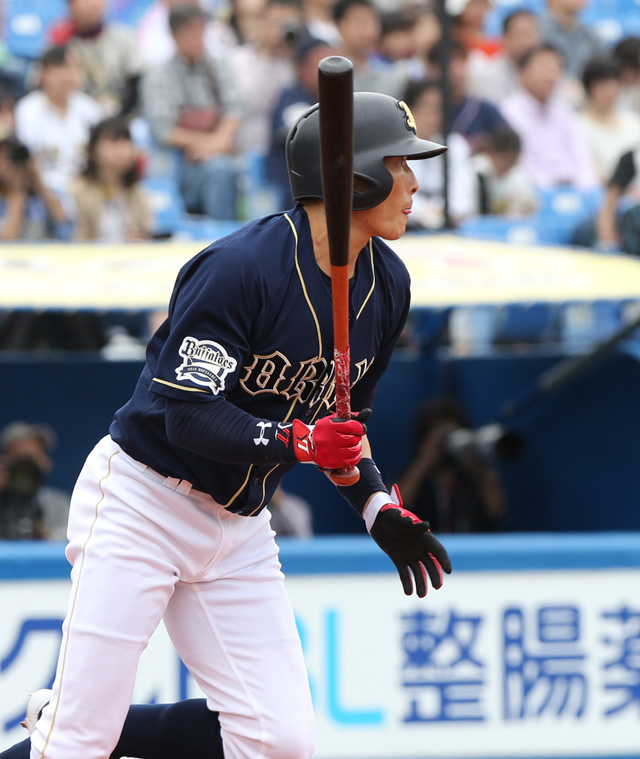 | 3番 糸井 中安 ランナー1,3塁の1-1からセンターへの先制タイムリーヒット! ヤ0-1オ 1,3塁  0 1  | ||