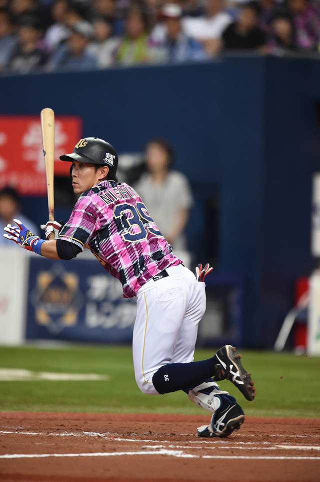 2番 西野 左安 レフトへのヒットを放つ 1塁 |