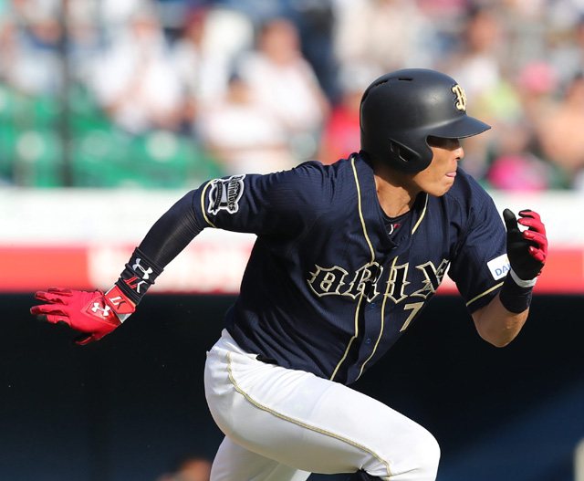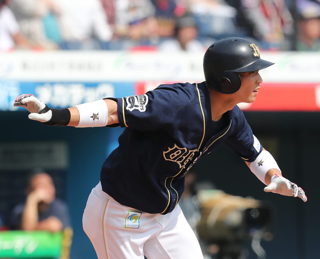 3番 糸井 中安 センターへのヒットを放つ 1塁 |