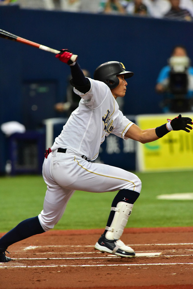 3番 糸井 右安 泳ぎながらもライトへヒットを放つ 1塁 |