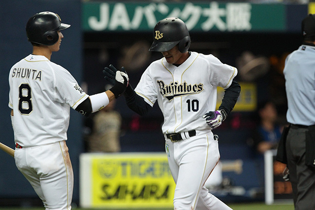 3番 糸井 空三振 一打先制の場面でワンバウンドした球に空振り、三振を喫する 3アウトチェンジ  |