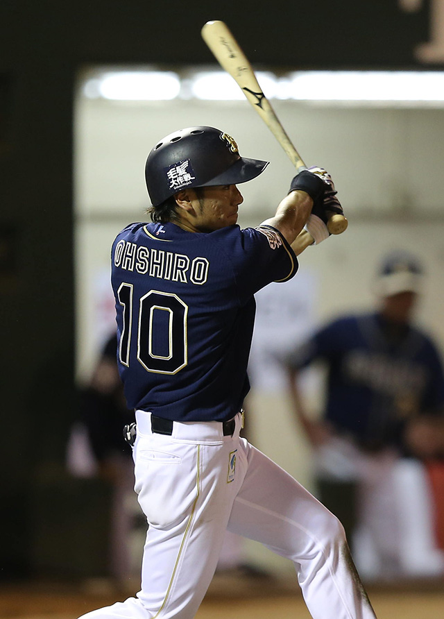 大城選手の打球はフェンス直撃の二塁打!