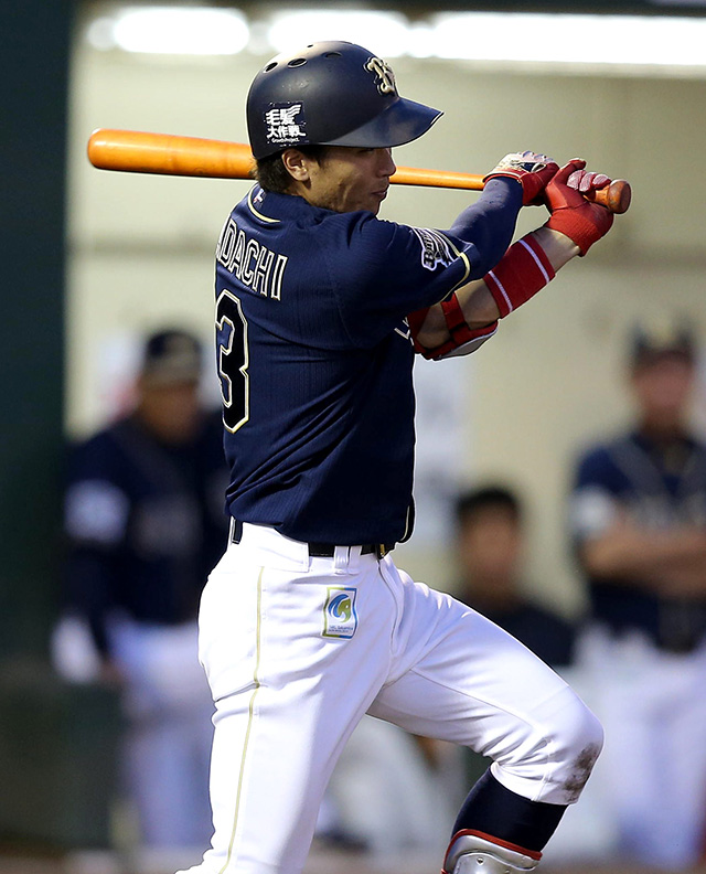 安達選手が安打を放つ