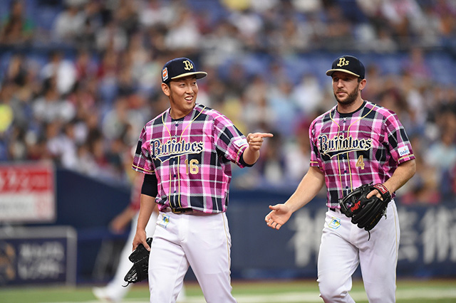 投手 佐藤達 投手交代:平野 守備交代:ショート縞田 守備変更:小島→ファースト 守備変更:ボグセビック→センター 守備変更:伊藤→キャッチャー |