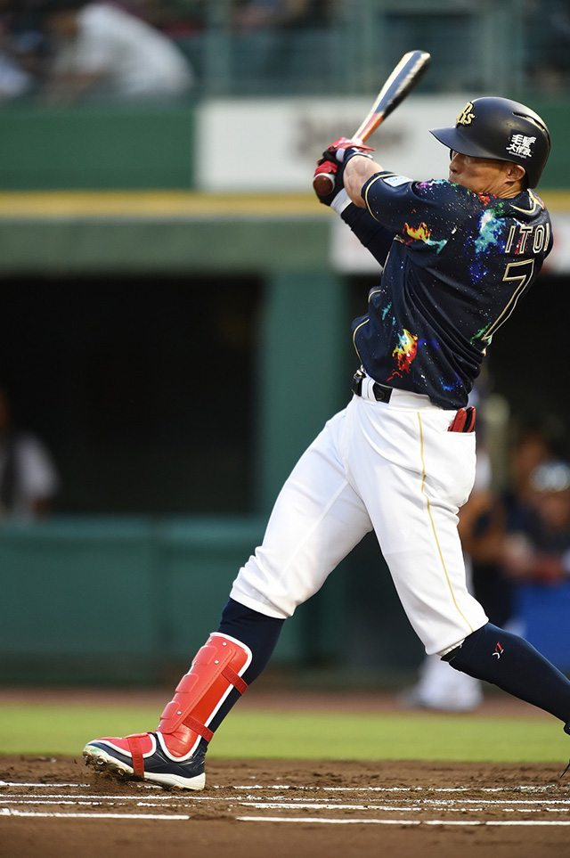 | 3番 糸井 左安 ど真ん中のストレートをレフトへ打ってヒット | |