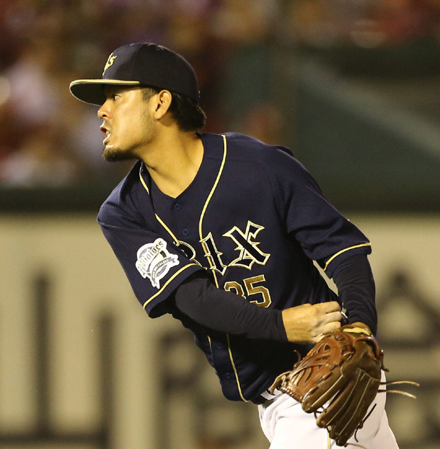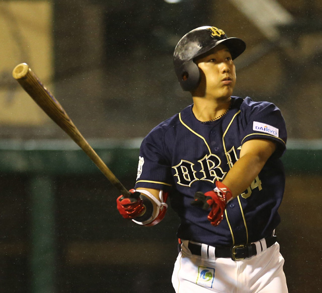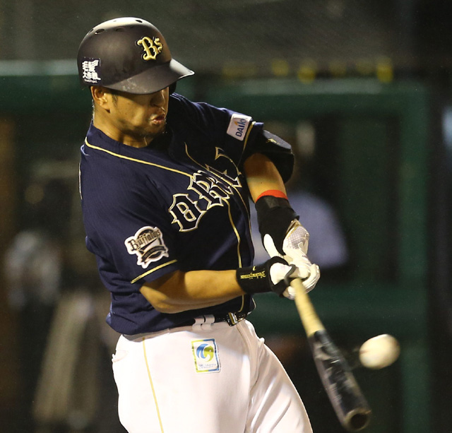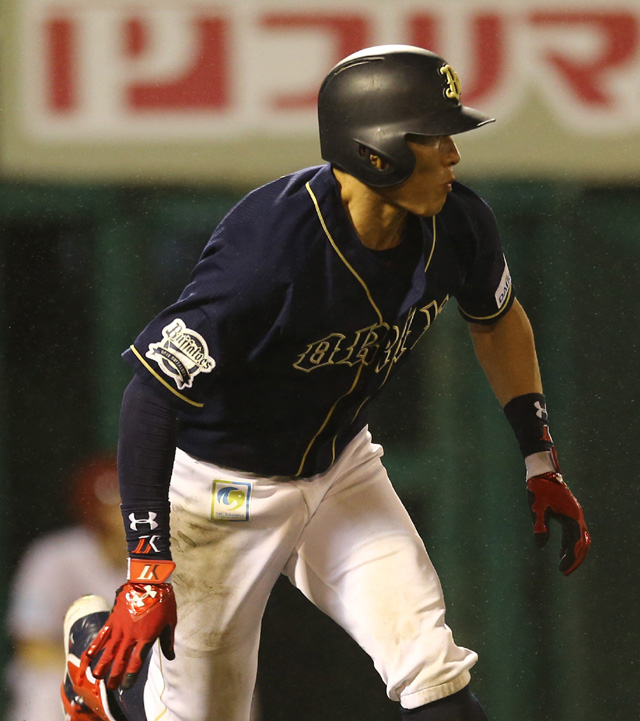 1番 糸井 左安 ランナー3塁 低めのスライダーをレフトへタイムリーヒット! 1塁 楽1-4オ ![]() 1