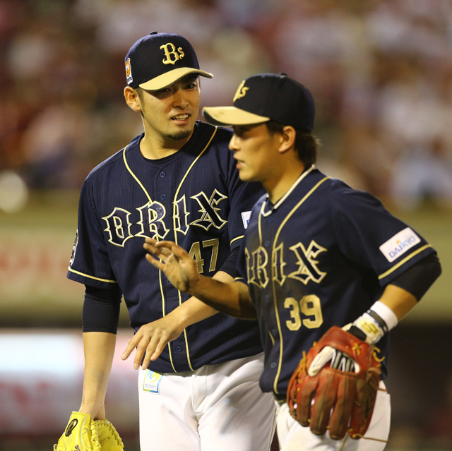 投手 青山 投手交代:松井裕 守備交代:センター聖澤 |
