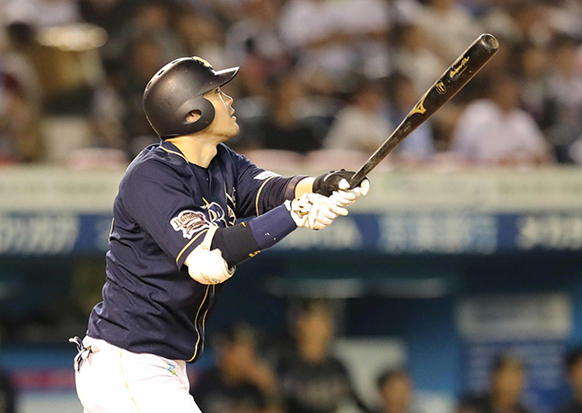 投手 スタンリッジ 3番 吉田正 右本 カウント2-1からライトスタンドへ勝ち越しホームラン! ロ3-4オ ![]() 3