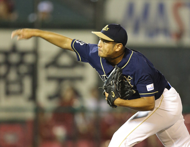 3番 ペゲーロ 左安 ランナー1塁 高めのストレートをレフトへ打ってヒット 1,2塁 |