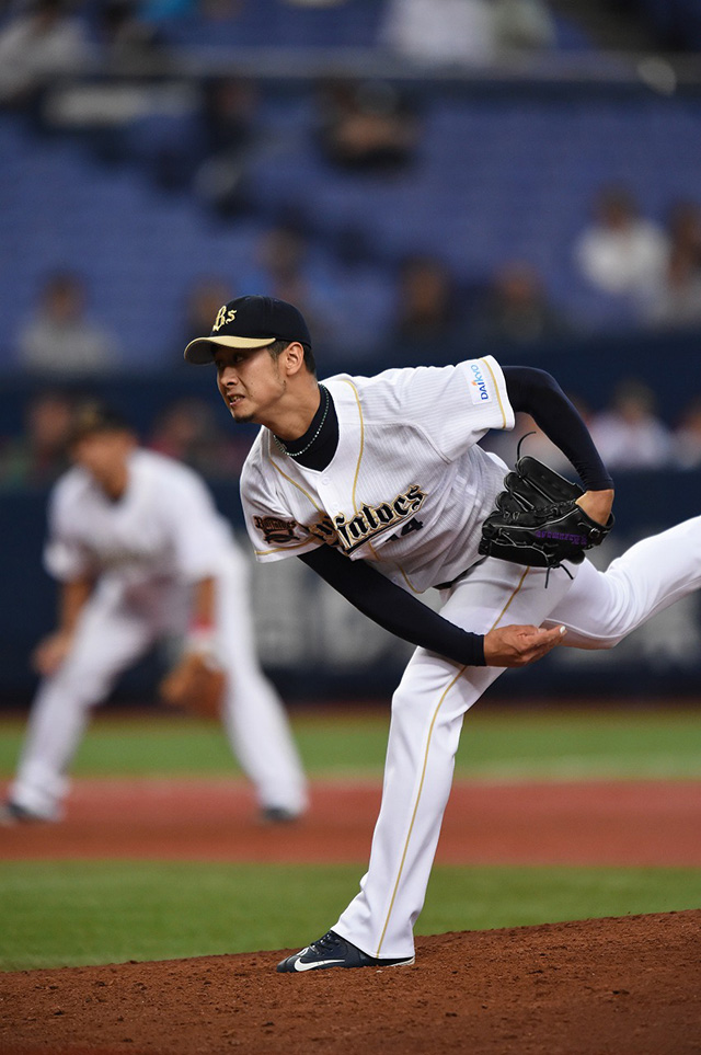 投手 岸 1番 糸井 空三振 内角低めのストレートを空振り三振 1アウト |