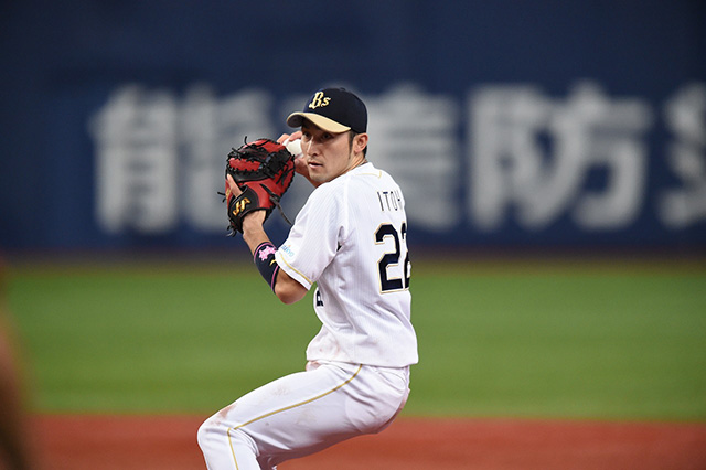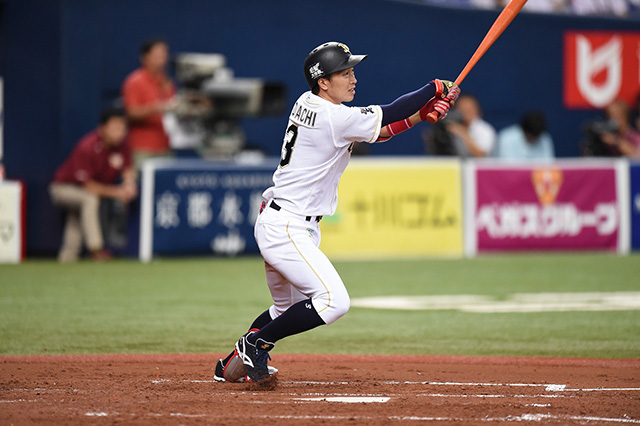 6番 伊藤 中安 ランナー2塁 外角低めのストレートをセンターへタイムリーヒット! 1塁 オ4-1楽 ![]() 4