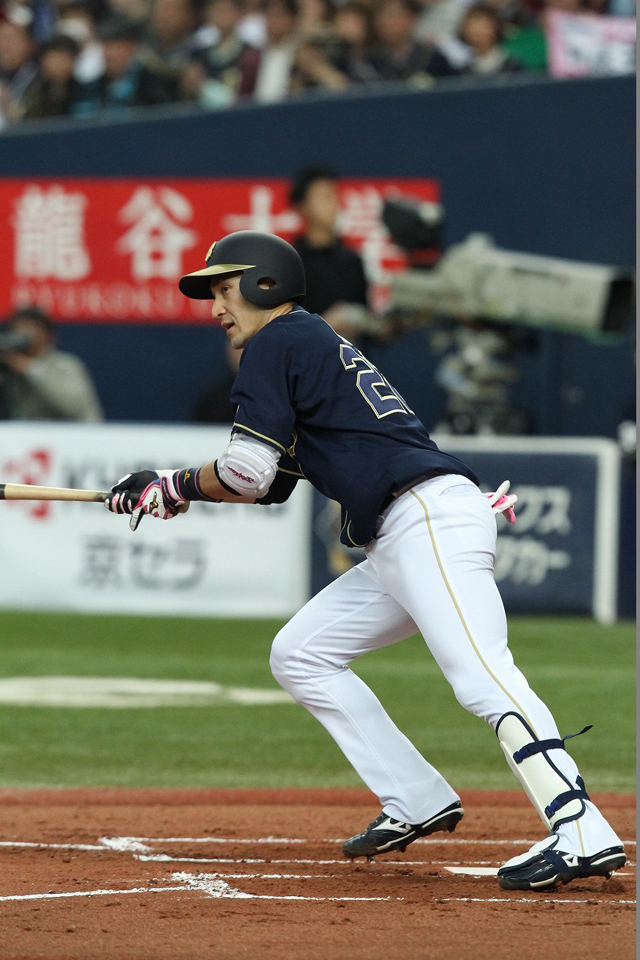 7番 伊藤 左安 ランナー1,3塁 外角のスライダーをレフトへ先制タイムリーヒット! 1,3塁 オ1-0楽 ![]() 1