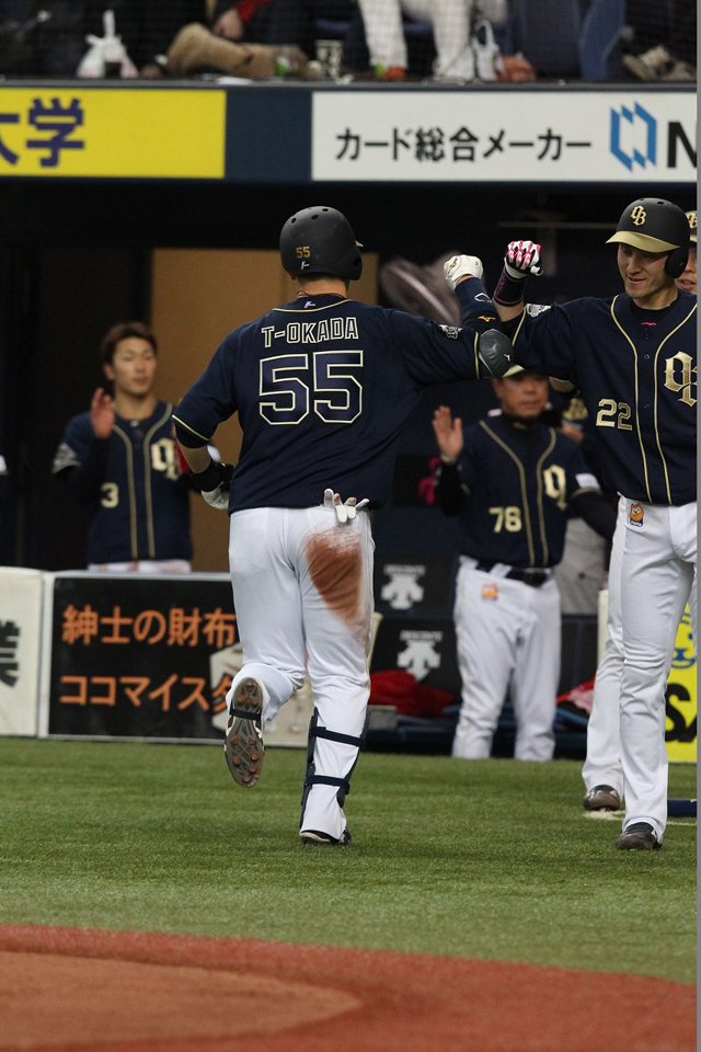 6番 T-岡田 四球 フォアボールを選ぶ 満塁 |