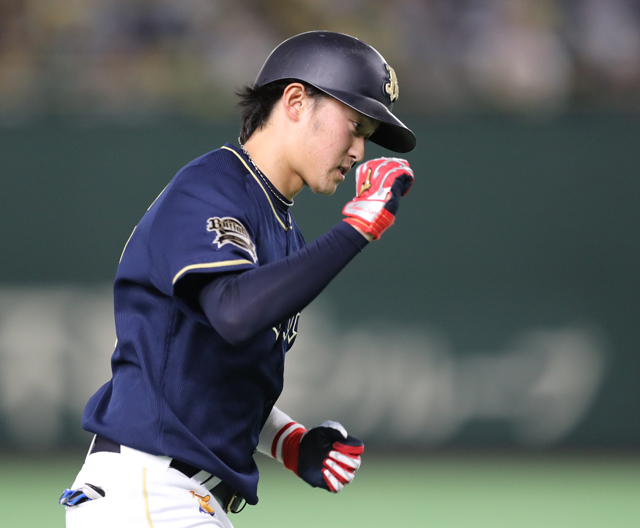 1番 宮崎 左本 カウント2-0から左中間へ勝ち越しホームラン! 日1-2オ ![]() 1