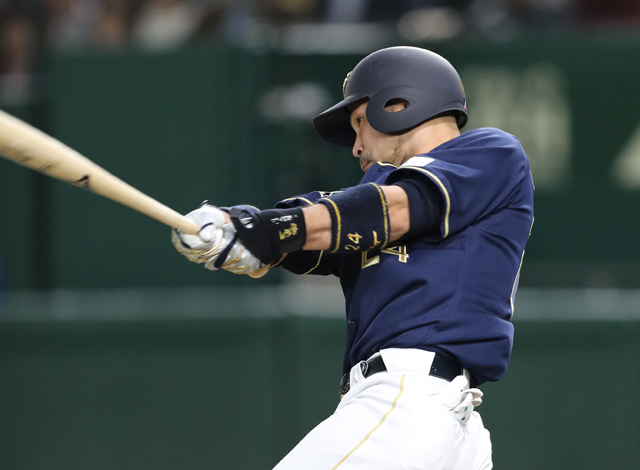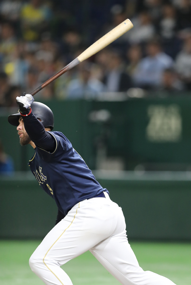 4番 レアード 左本 ランナー1塁 カウント1-2から左中間へ2ランホームラン! 日4-8オ ![]() 4