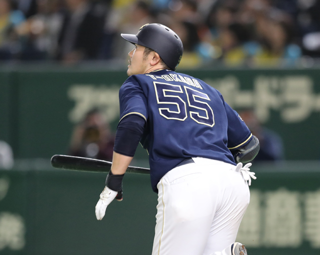 6番 T-岡田 左安 内角低めのフォークをレフトへ打ってヒット 1塁 |