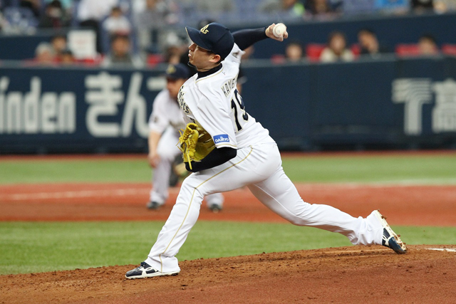 投手 金子千尋 5番 メヒア 空三振 内角低めのフォークを空振り三振 1アウト |