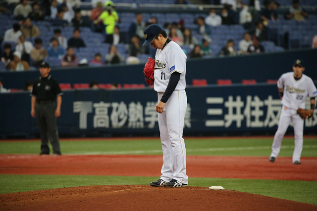 投手 武隈 2番 西野 四球 フォアボールを選ぶ 満塁 |