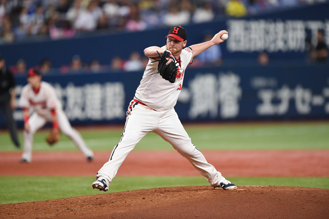 投手 有原 6番 伊藤 右飛 外角低めのカットボールを打つもライトフライ 1アウト |