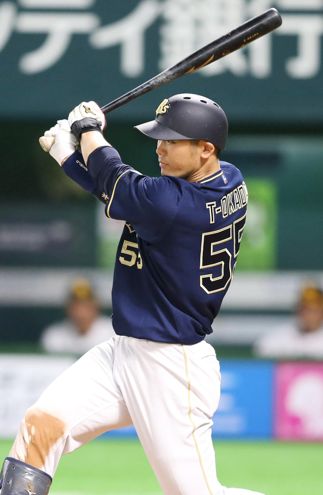 2死から右中間への二塁打でチャンスを作ったT-岡田選手!