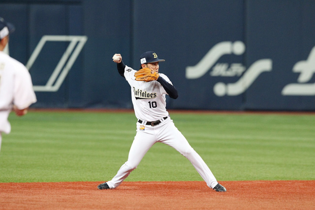 投手 東浜 4番 T-岡田 遊ゴロ 外角のシュートを打つもショートゴロ 1アウト  |