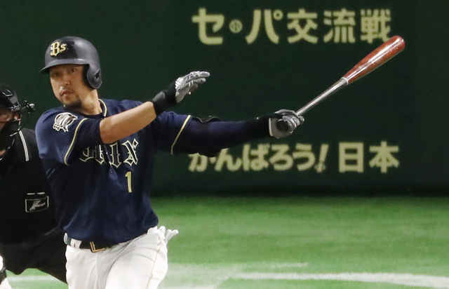 センターへのタイムリーヒットで追加点を奪った中島選手!