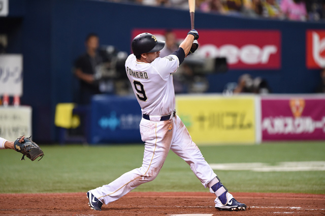 9番 モレル 中2 ランナー2塁 ど真ん中のカーブをセンターへタイムリーツーベース! 2塁 オ2-3神 ![]() 2
