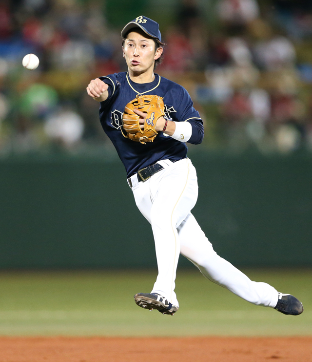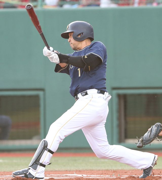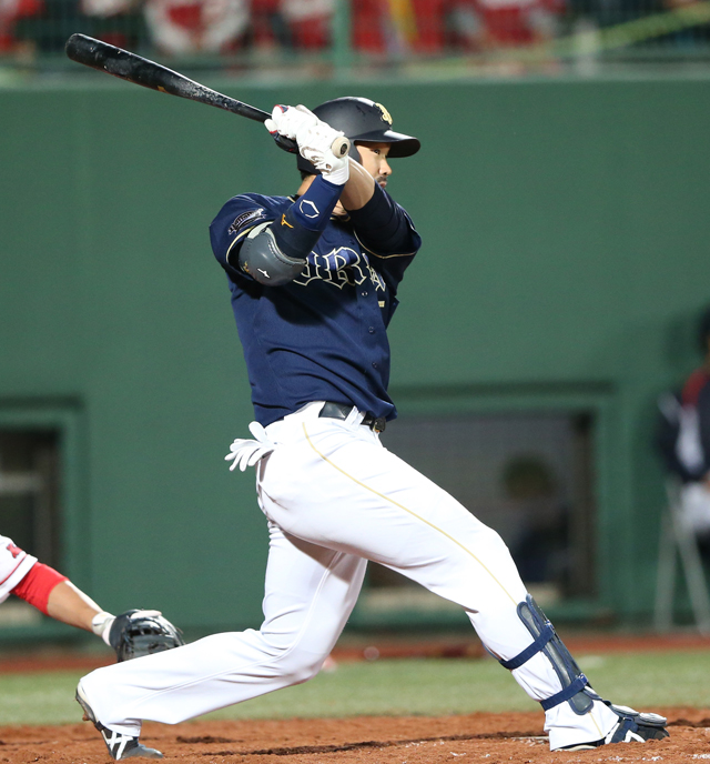 ライトへのヒットでチャンスメイクしたT-岡田選手!