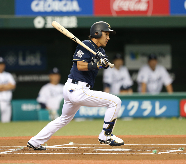 投手 十亀 5番 T-岡田 中安 外角のカーブをセンターへ打ってヒット 1塁 |